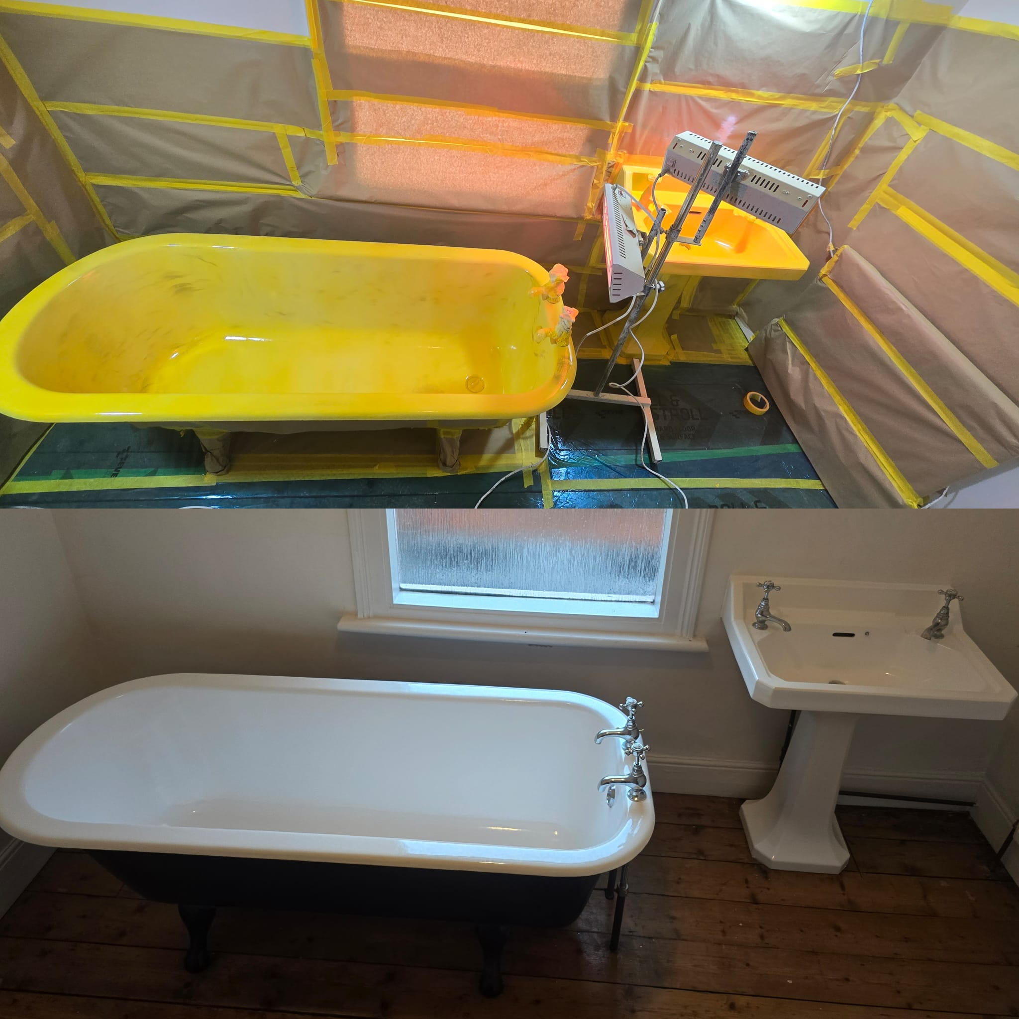 Bathroom Fixture Re-enamelling Experts: Revitalize Your SpaceTired of a worn-out bathroom? Our professional re-enamelling services can transform your bathroom without the need for costly replacements.We specialise in revitalizing baths, shower trays, and sinks by stripping away old enamel and applying a durable, high-quality, glossy finish.This Is Our One-Day Process:Assessment and Preparation: